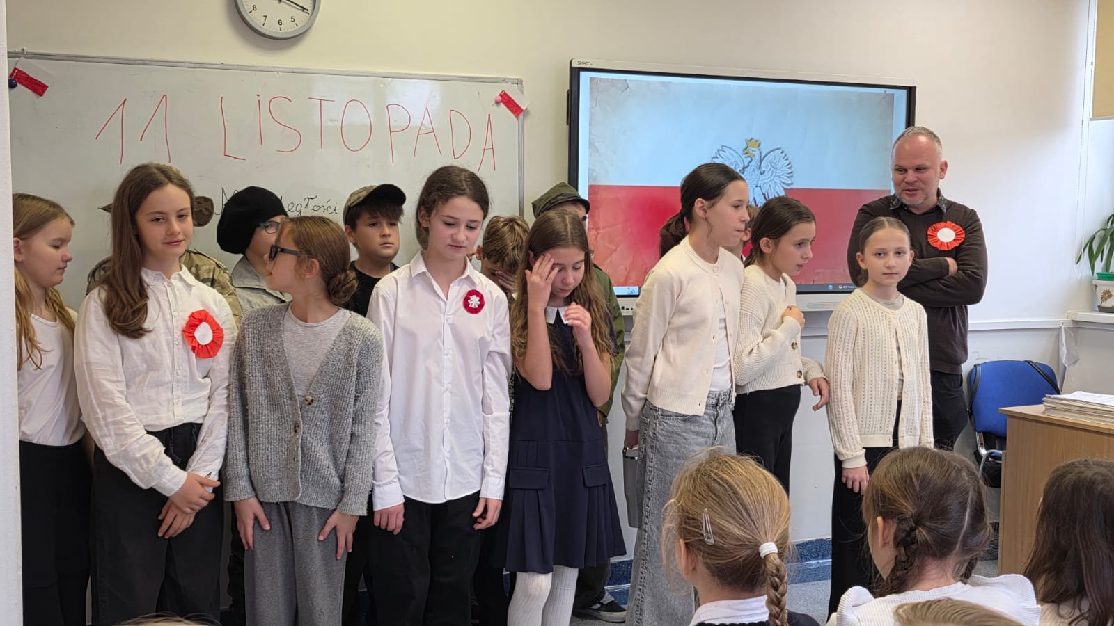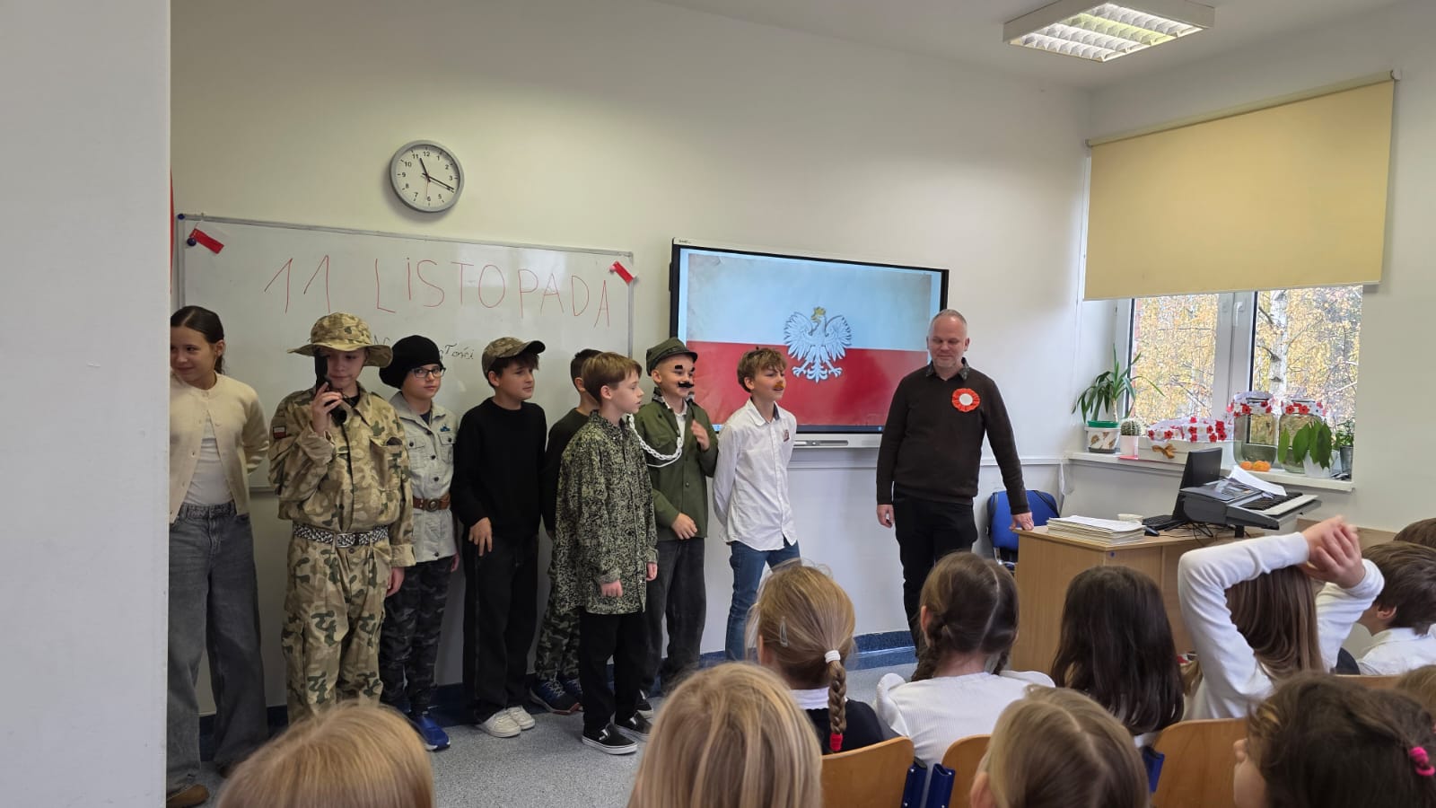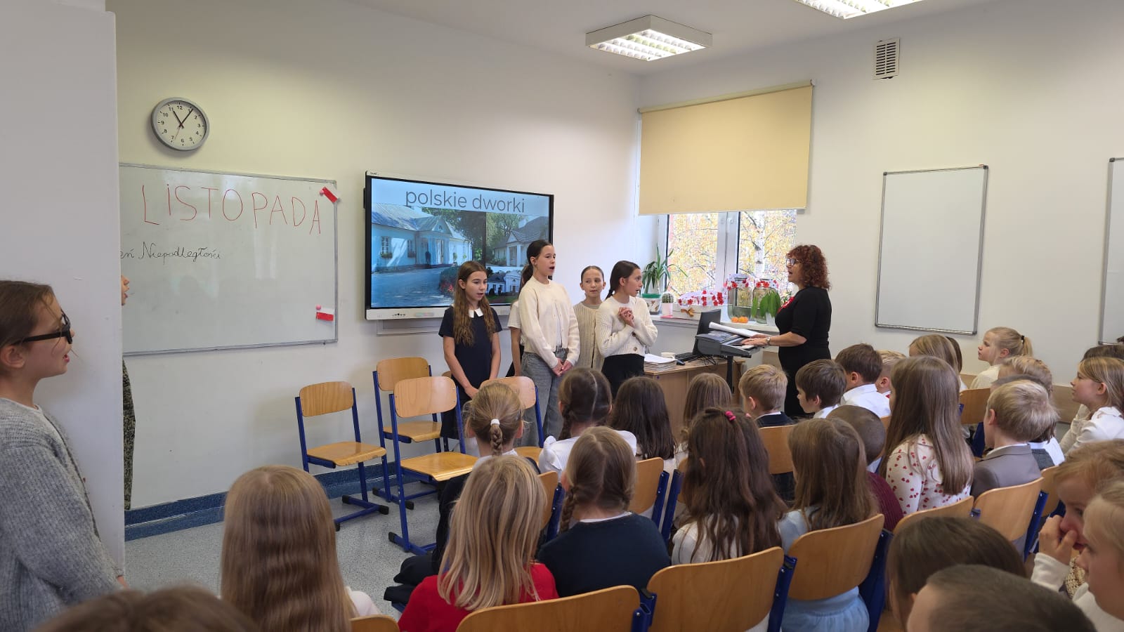 Dzień Niepodległości na Polankach przebiegł bardzo uroczyście. Klasa 5 przygotowała przedstawienie przybliżające kolegom z młodszych klas historię odzyskania Niepodległości przez Polskę. Uczniowie sami napisali scenariusz, odtworzyli scenki dramowe i wraz z p. Małgosią na technice przygotowali prezentację multimedialną. Było wspólne śpiewanie pieśni patriotycznych przygotowanych przez klasę 5, chór dziecięcy i zespół wokalny. Punktualnie o godzinie 11.11 wybrzmiał w naszej szkole Hymn Polski. Dziękujemy wszystkim Uczestnikom!