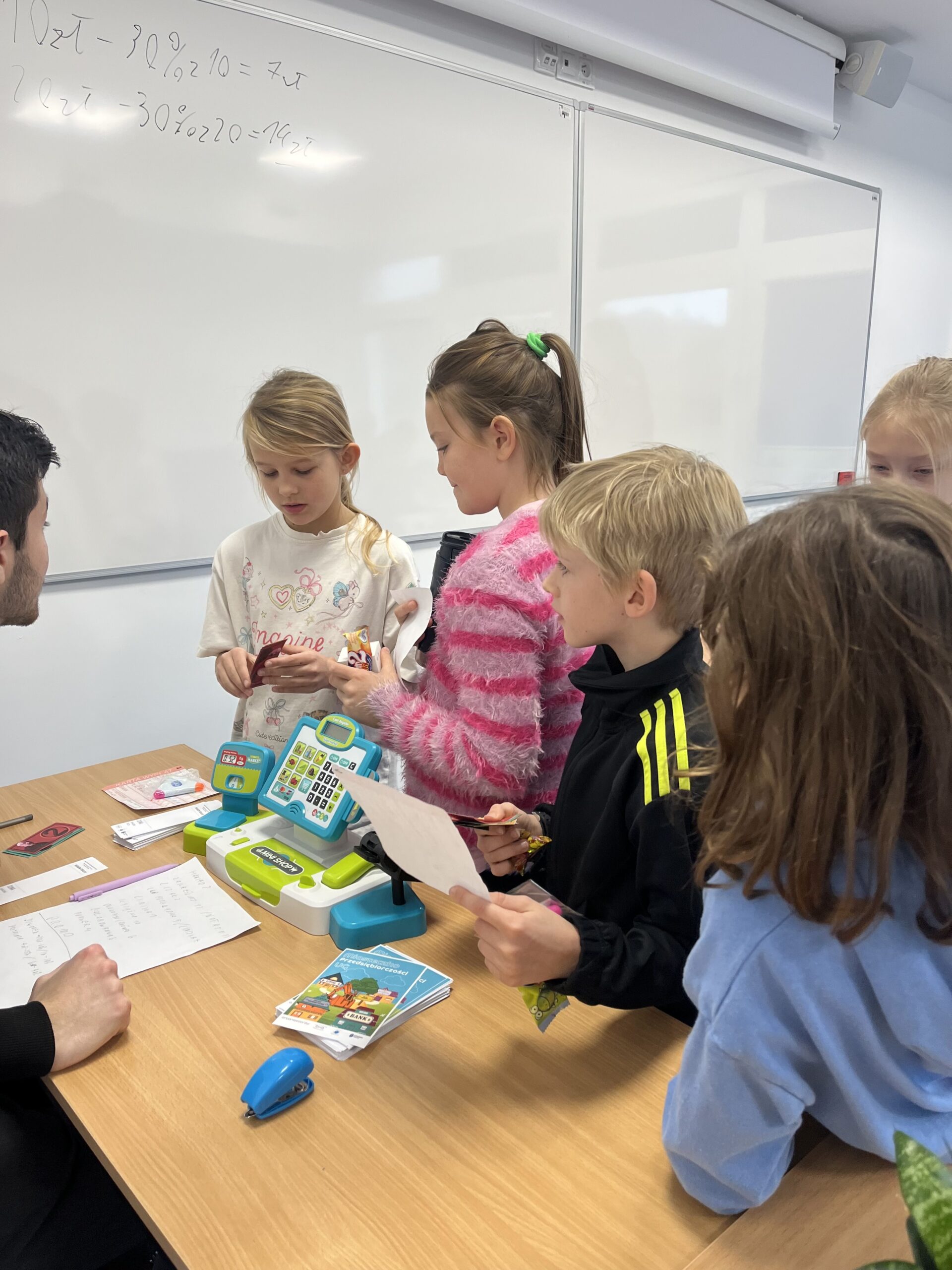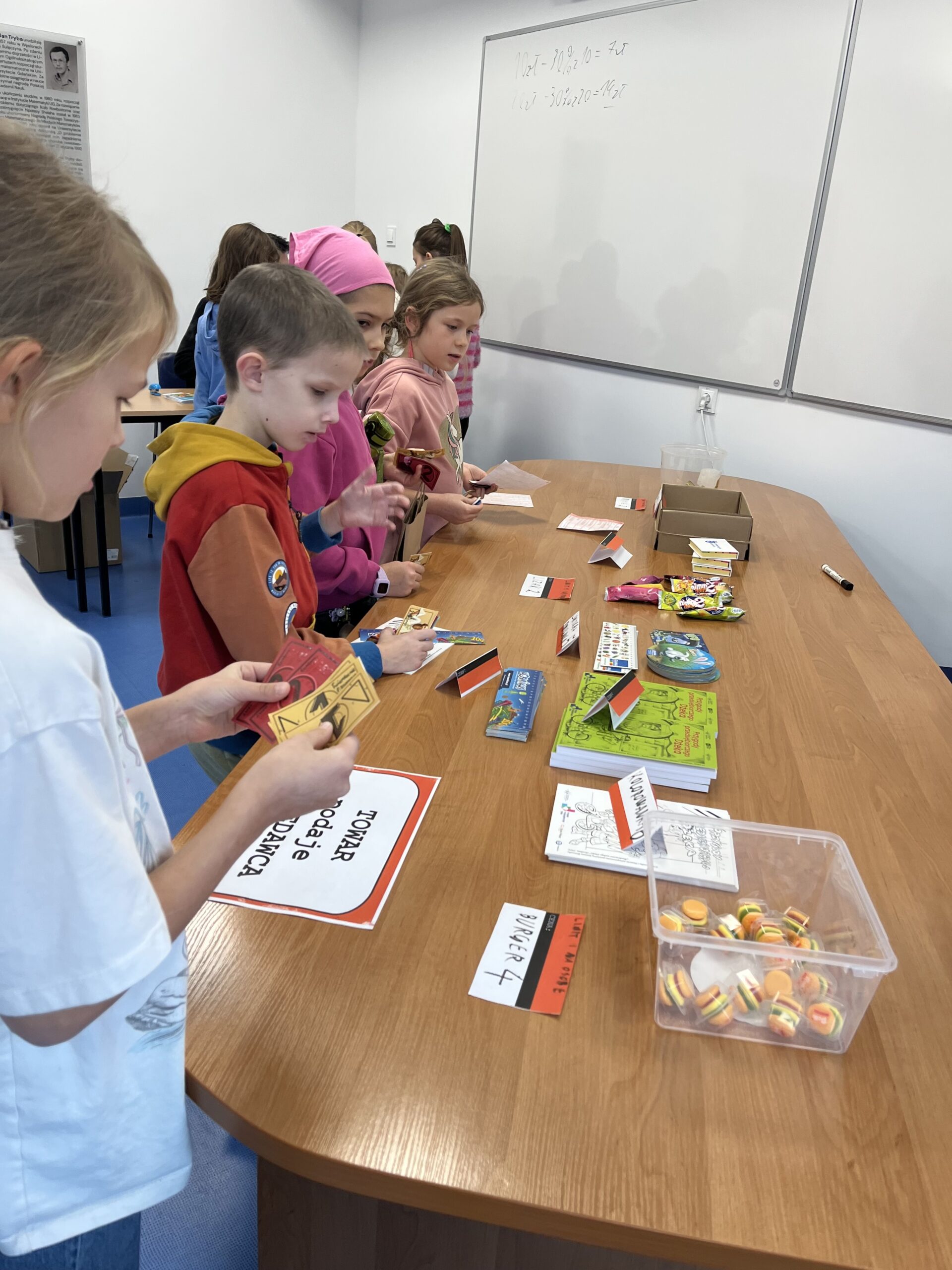 19 listopada pojechaliśmy na Wydział Matematyki Uniwersytetu Gdańskiego z okazji Dnia Przedsiębiorczości. Pojechaliśmy tam tramwajem. Na miejscu czekali na nas studenci z przygotowanymi z tej okazji stanowiskami z zadaniami matematycznymi, na których zbieraliśmy pieczątki. Na koniec dostaliśmy za nie matematyczne banknoty, za które mogliśmy sobie kupić w sklepiku jakiś drobiazg albo coś słodkiego. W wydarzeniu wzięła udział klasa 2 oraz klasa 3.