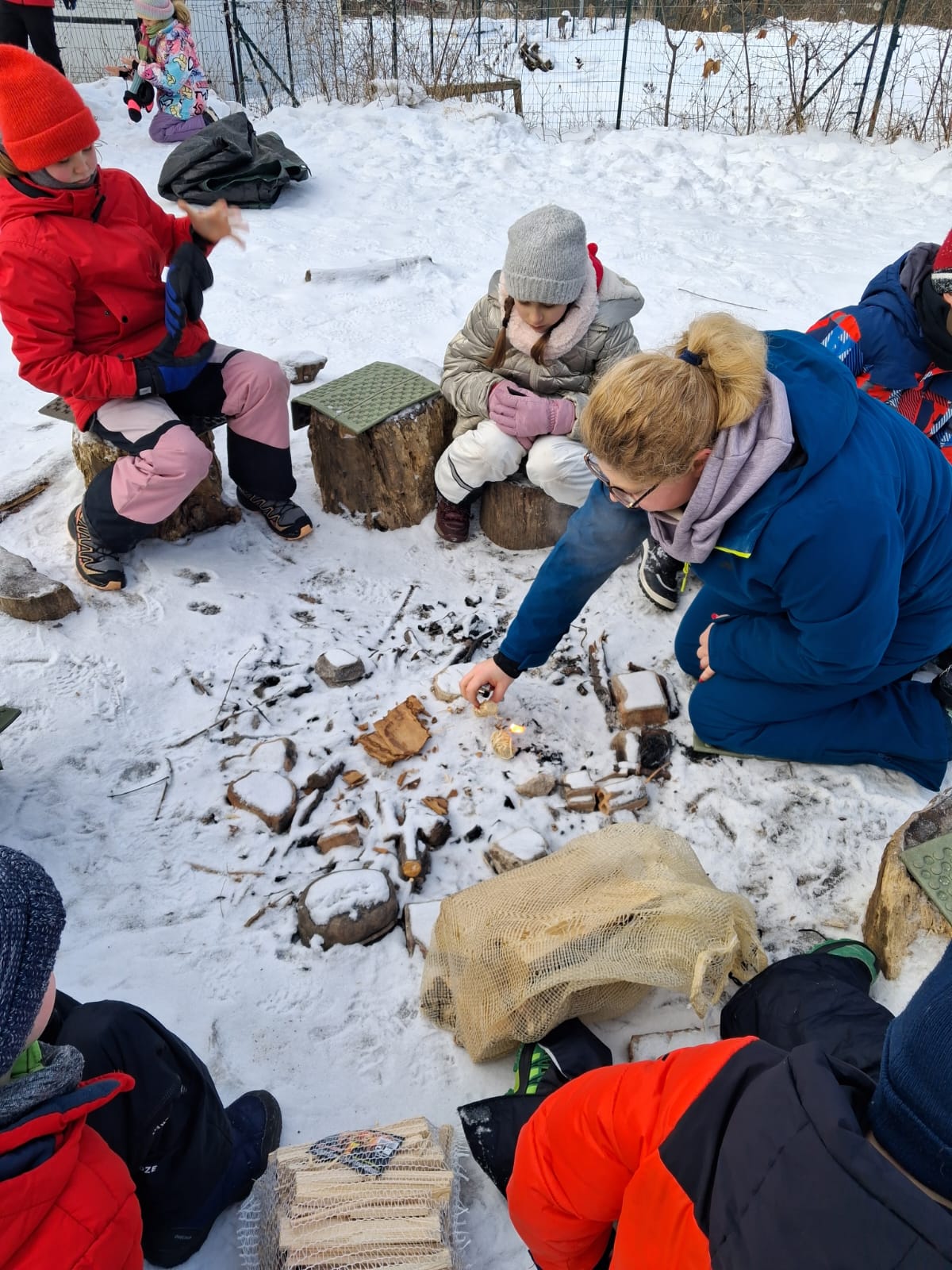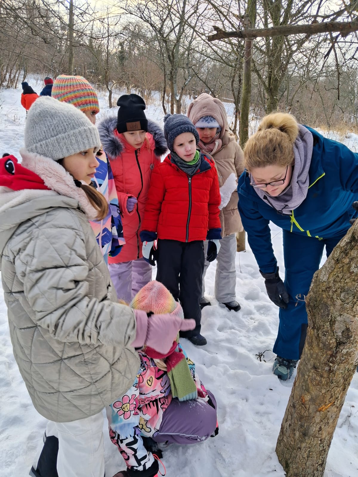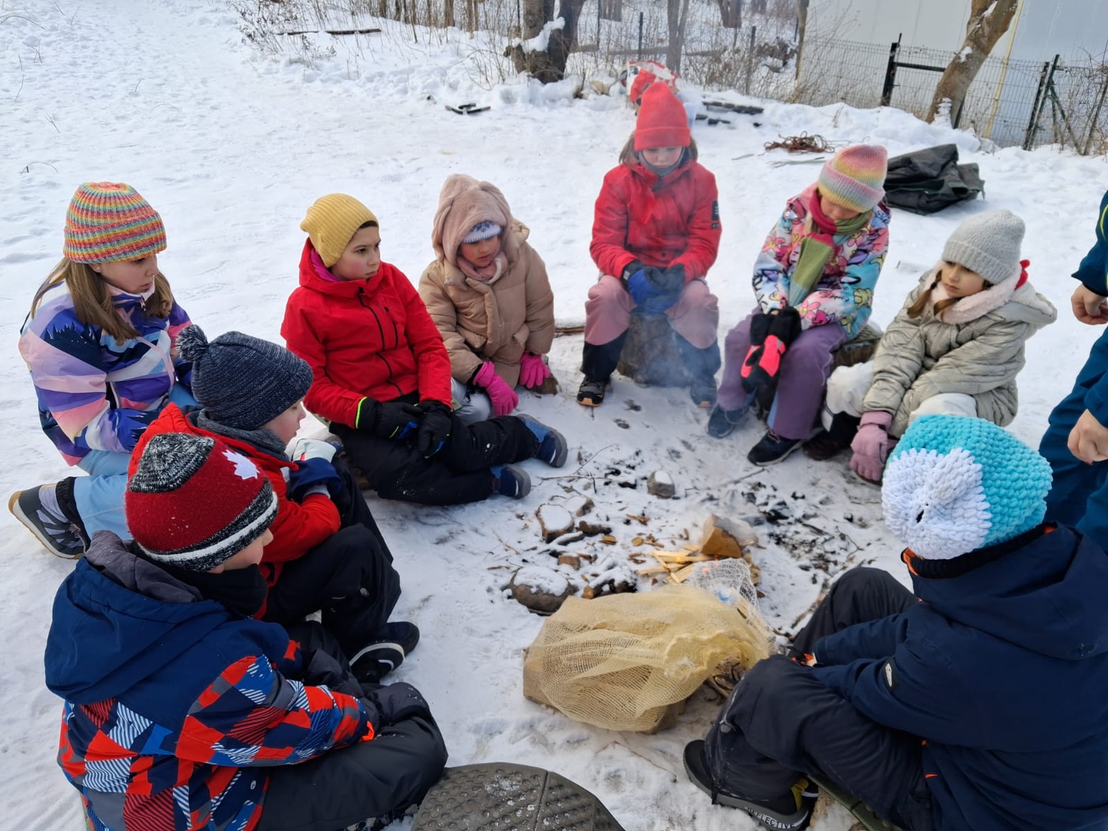 Na początku lutego ucznowie 3 klasy zwięli udział w zajęciach Leśnej Bandy. Tym razem były to typowe zimowe aktywności. Rozpalanie ogniska, piłowanie drewna na opał, szukanie i poznawanie śladów zwierząt. Udało się zobaczyć tropy dzika, sarny i wiewiórki. Ukoronowaniem zajęć było pieczenie chleba, kiełbasek i pianek na ognisku. Chociaż mróz nie odpuszczał wszyscy dali radę. Kolejne zajęcia wiosną:)