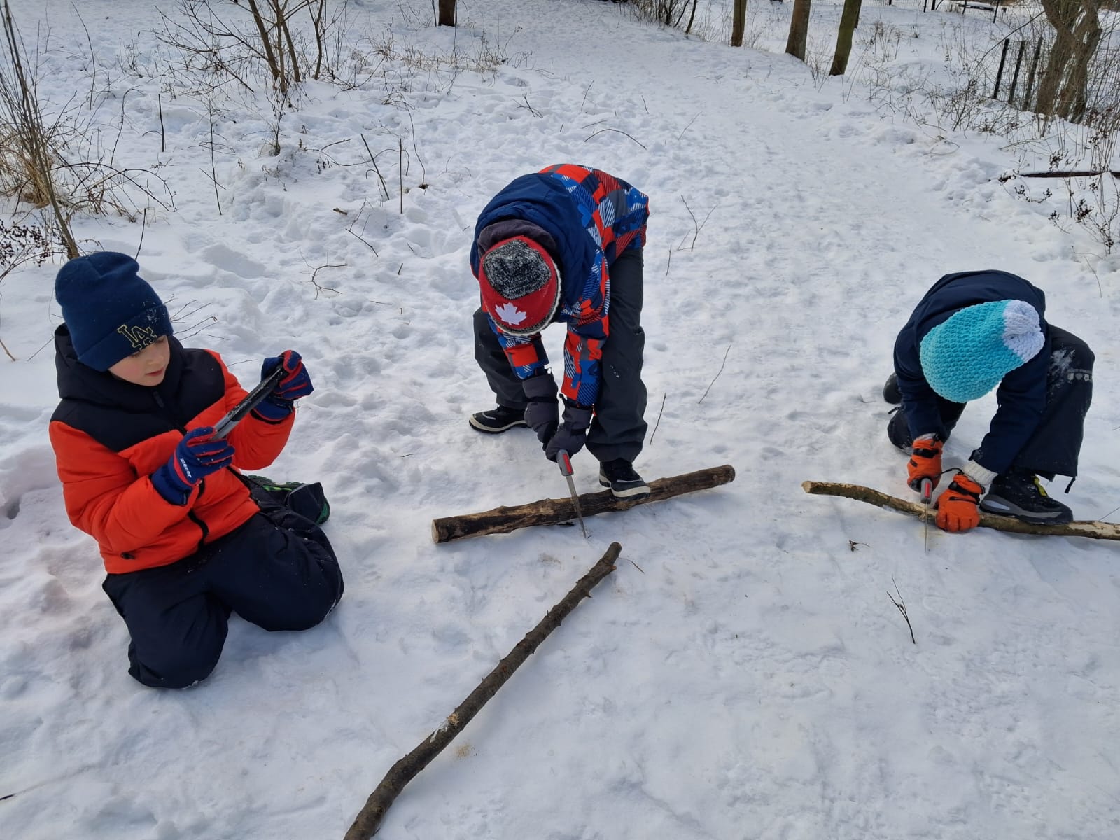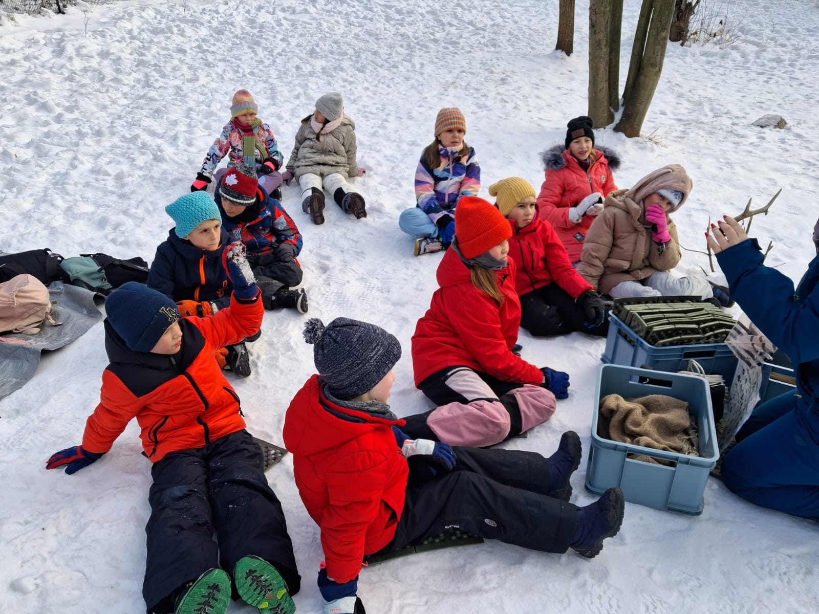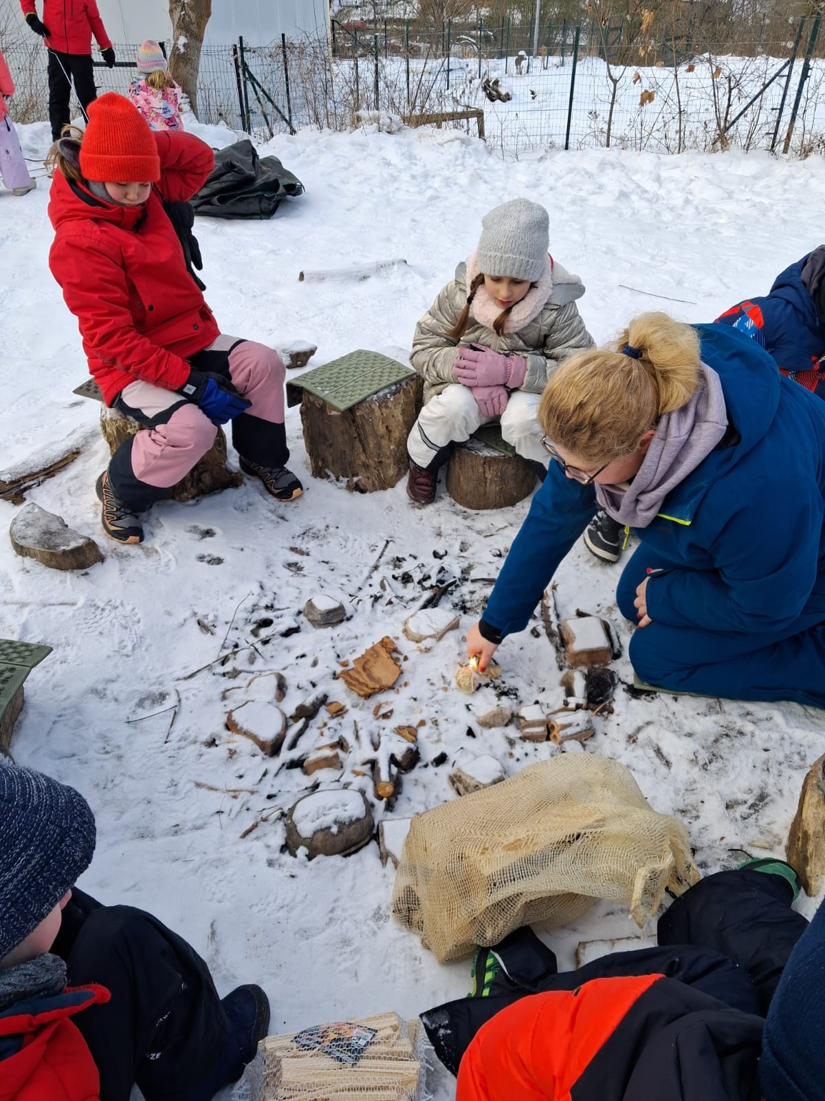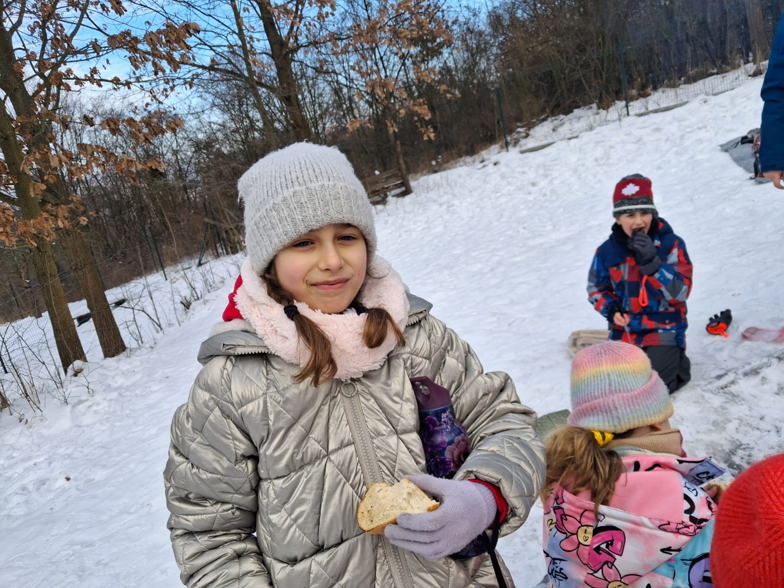 Na początku lutego ucznowie 3 klasy zwięli udział w zajęciach Leśnej Bandy. Tym razem były to typowe zimowe aktywności. Rozpalanie ogniska, piłowanie drewna na opał, szukanie i poznawanie śladów zwierząt. Udało się zobaczyć tropy dzika, sarny i wiewiórki. Ukoronowaniem zajęć było pieczenie chleba, kiełbasek i pianek na ognisku. Chociaż mróz nie odpuszczał wszyscy dali radę. Kolejne zajęcia wiosną:)