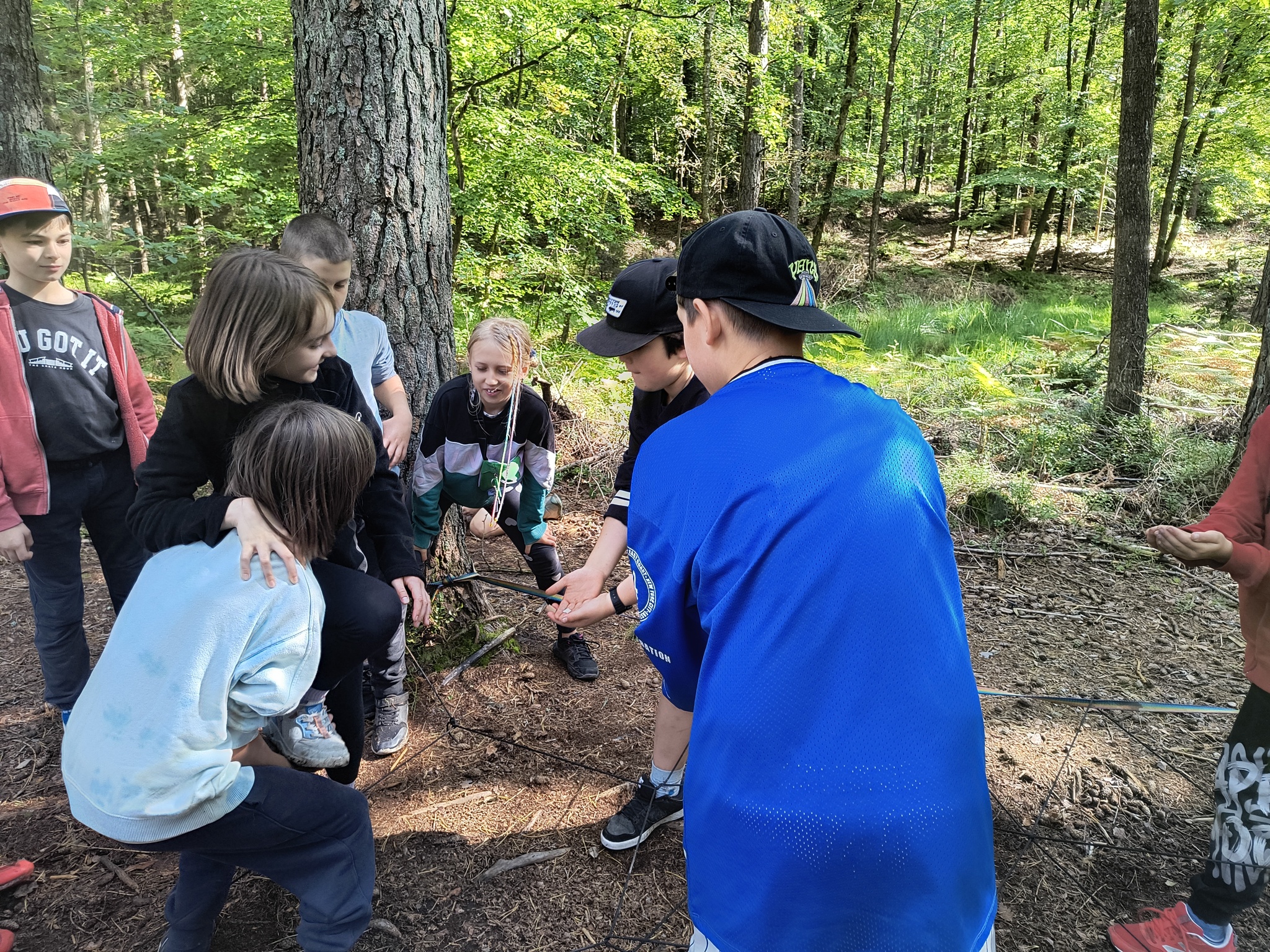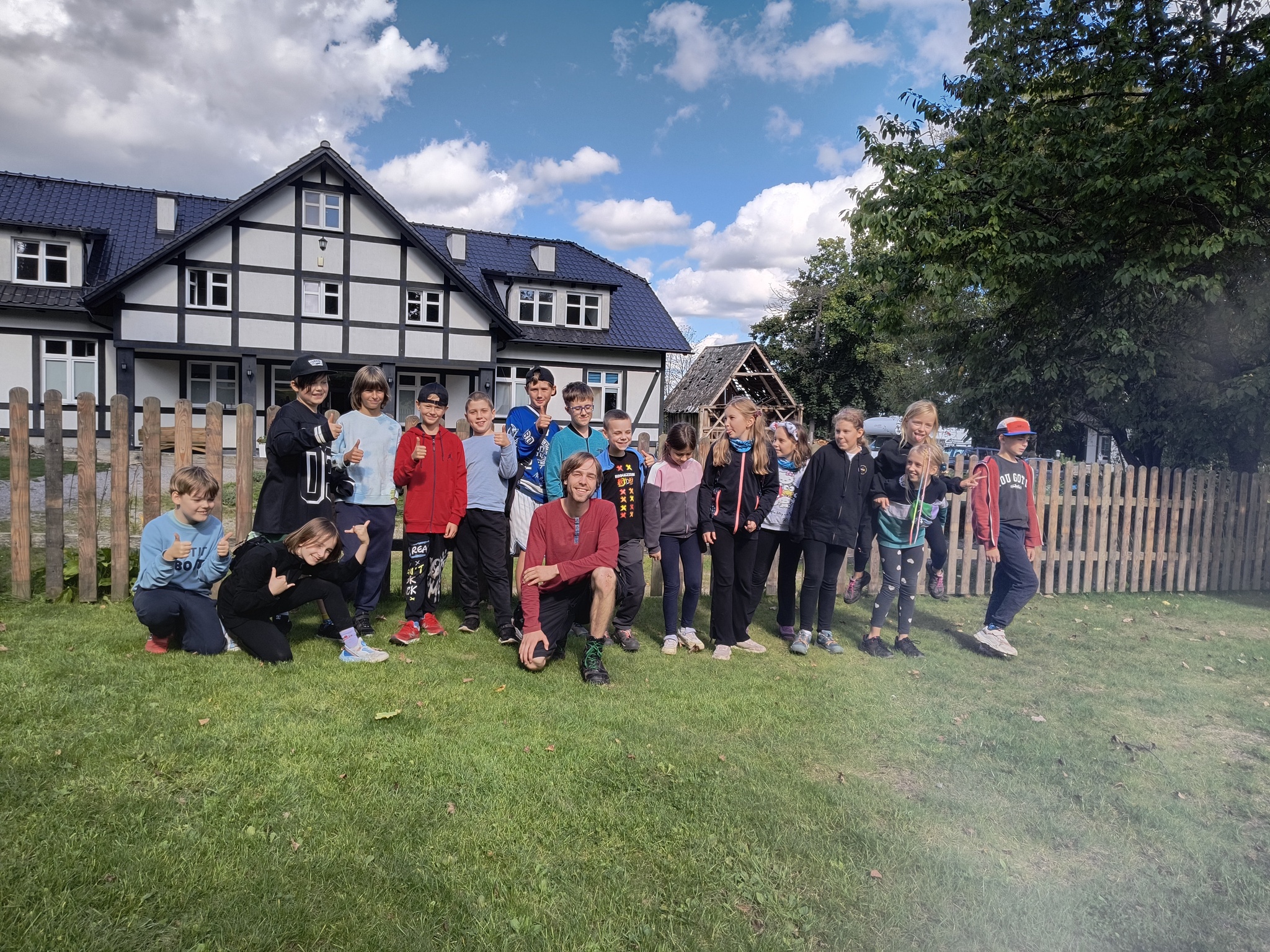 Na “Złotą Szkołę” klasa IV wybrała się do Miechucina, do malowniczo położonego wśród kaszubskich lasów i jezior Gospodarstwa Agroturystycznego „Na Górce”. Spędziliśmy tam trzy dni pełne ekscytujących wrażeń, survivalowych wyzwań oraz radosnych spotkań przy smakowitych posiłkach. Dzięki inwencji i doświadczeniu naszych animatorów, którzy przygotowali dla nas program biwaku leśnego, mieliśmy okazję sprawdzić naszą umiejętność pracy zespołowej, pokonywać swoje lęki oraz przekonać się, ile radości daje współpraca i wspólna zabawa. Wyjątkowym wspomnieniem dla wielu z nas pozostaną z pewnością nocne podchody w lesie oraz podziwianie księżyca i słuchanie przy ognisku miechucińskich opowieści o dobrym duchu Albercie…